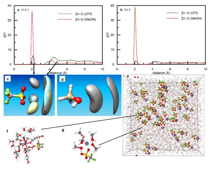 3. 不同溶剂分子、阴离子中的Zn-O RDF