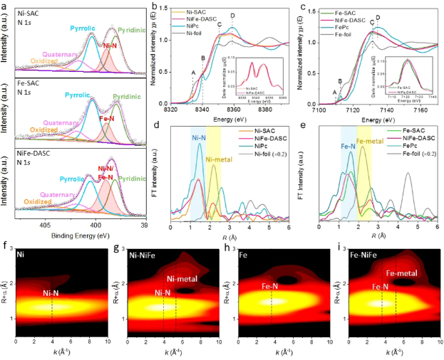 深入的实验和理论分析表明,NiFe杂原子对的Fe作为催化中心,其与Ni的轨道耦合导致更高的氧化态和与中间体的结合强度减弱,从而提高CO2RR和OER性能。这项工作为异质DASC的合理设计、工作机制和应用提供了重要见解。