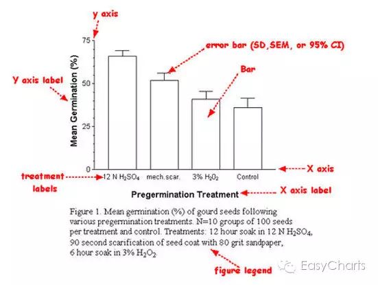 如以上单式直条图,标记了误差范围,并在标题中做出统计学解释。
