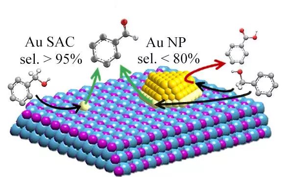 当然,从详细机理来解释,那就是 Au 或 Pt 与氧化铈界面处的晶格氧具有更高的反应活性和选择性。单原子催化剂的界面最大化特性,使得 Au、Pt 最大比例地活化了载体二氧化铈中的晶格氧参与氧化,是单原子催化剂比普通纳米催化剂具有更高选择性和活性的重要原因。