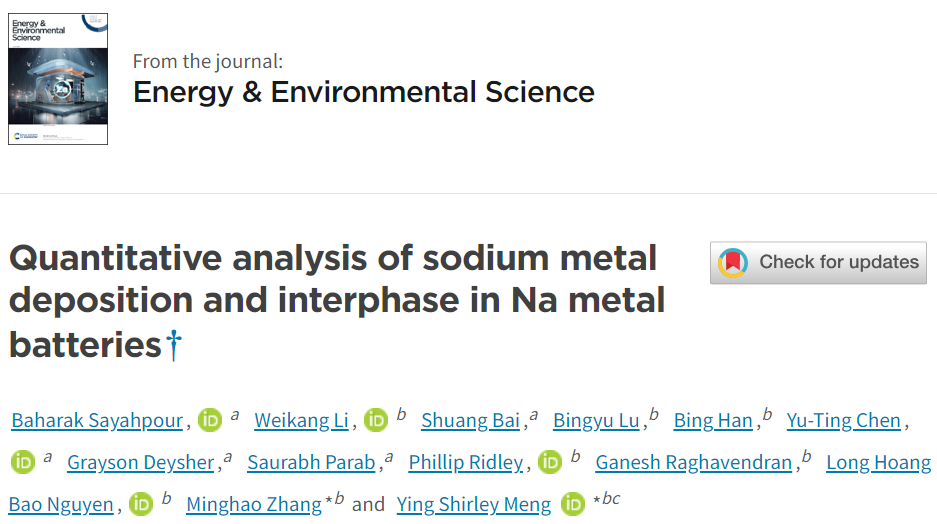 2024年1月15日和1月18日,芝加哥大学孟颖教授团队在Energy Environ. Sci.和Matter上发表了两篇关于钠电池的最新成果,即“Quantitative analysis of sodium metal deposition and interphase in Na metal batteries”和“Amorphous and nanocrystalline halide solid electrolytes with enhanced sodium-ion conductivity”。下面,对这两篇成果进行简要的介绍!