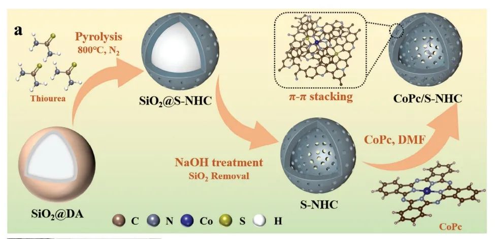 在此,浙江理工大学陈鹏作、童赟等人以酞菁钴(CoPc)为例,提出了以空心碳球(S-NHC)为载体的杂S原子掺杂策略,揭示了微环境调控与单钴原子催化活性之间的内在关系。