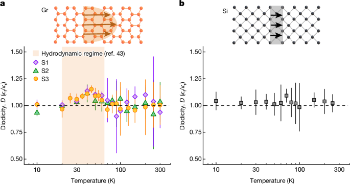 成果简介有鉴于此,东京大学Xin Huang,Masahiro Nomura等教授团队在Nature期刊上发表了题为“A graphite thermal Tesla valve driven by hydrodynamic phonon transport”的最新论文。研究者们提出了通过设计不对称结构,如特斯拉阀,实现声子热导的整流。例如,近期的研究中,科学家们在同位素富集的石墨晶体中设计了微米级的特斯拉阀,并成功地在45 K下观察到了导热系数在不同方向上存在15.2%的显著差异。这一结果为利用声子集体行为进行微尺度和纳米尺度电子设备的热管理提供了新的思路和方法,推动了固体中热整流的研究进展。研究亮点1. 实验首次设计并制造了微米级特斯拉阀,采用同位素富集的石墨晶体,研究其在热传导中的整流效果。2. 实验通过在90纳米厚的石墨中实现特斯拉阀的构造,观察到在45 K温度下,不同流动方向上的热导率存在显著差异,具体为15.2%。这表明声子流体动力学在固体材料中可以有效实现热整流,展示了声子集体行为的潜力。3. 该研究揭示了声子在固体材料中流动的复杂性,尤其是在微固体通道中的热整流机制,指出相较于液态流体,固态声子流动面临动量守恒碰撞缺乏和类液体流动稀少的挑战。4. 结果表明,通过对石墨材料的深入研究,能够在微米尺度和纳米尺度的电子设备中有效管理热量,为热整流的实际应用奠定基础,推动相关技术的进展。图文解读图1: 石墨特斯拉阀和热特性。、图2: 声子特斯拉阀的蒙特卡罗模拟。图3: 石墨特斯拉阀的热导率。图4: 石墨特斯拉阀中的热整流。结论展望本文的研究为热流逆转的实现提供了新的视角,强调了微米级通道设计在集体声子运动和Poiseuille热流中的重要性。通过采用直入流和适当长度的弯曲通道,能够有效增强声子水动力流动,从而提高热整流效果。此外,研究表明,连接多个特斯拉阀单元串联的设计理念,在流体动力学中已被证明有效,也可为提高石墨特斯拉阀的热整流效果提供可行的途径。然而,现阶段的制造限制使得实际的悬浮石墨结构局限于约100×100μm²的片状规模,未来的实验研究应着重探索更宽的通道宽度和延长弯曲通道的出口长度,以进一步提高整流性值。在样品制备和表征过程中,采用了多种先进技术,如电子束光刻、氧气等离子体刻蚀和次级离子质谱等,确保了样品的单晶特性。这些研究不仅为声子水动力学在固体热整流中的应用提供了重要的实验基础,也为未来开发更高效的热管理材料和器件奠定了坚实的理论依据和技术支持。文献信息Huang, X., Anufriev, R., Jalabert, L. et al. A graphite thermal Tesla valve driven by hydrodynamic phonon transport . Nature (2024).