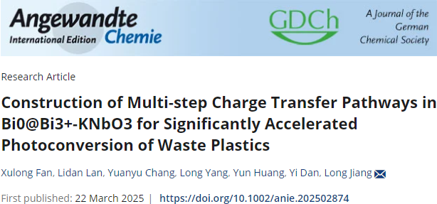 Fan X., Lan L., Chang Y. et al. Construction of Multi-step Charge Transfer Pathways in Bi0@Bi3+-KNbO3 for Significantly Accelerated Photoconversion of Waste Plastics. Angew. Chem. Int. Ed. (2025).https://doi.org/10.1002/anie.202502874.