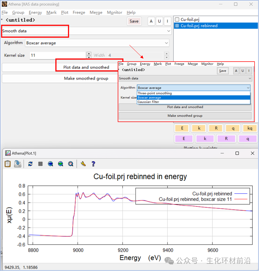Athena 还有对于噪音数据处理的功能,即平滑数据,但是这种操作并不被推荐!!! 改善噪音数据的最佳方法是尽可能重新考虑样品制备或测试程序。其次,测量更多数据并依靠中心极限定理使数据达到理想化。