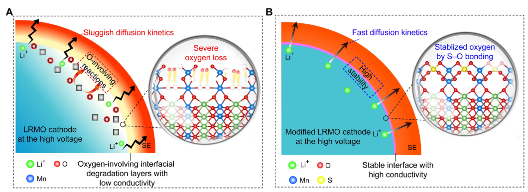 Eliminating interfacial O-involving degradation in Li-rich Mn-based cathodes for all-solid-state lithium batteries. https://doi.org/10.1126/sciadv.add5189